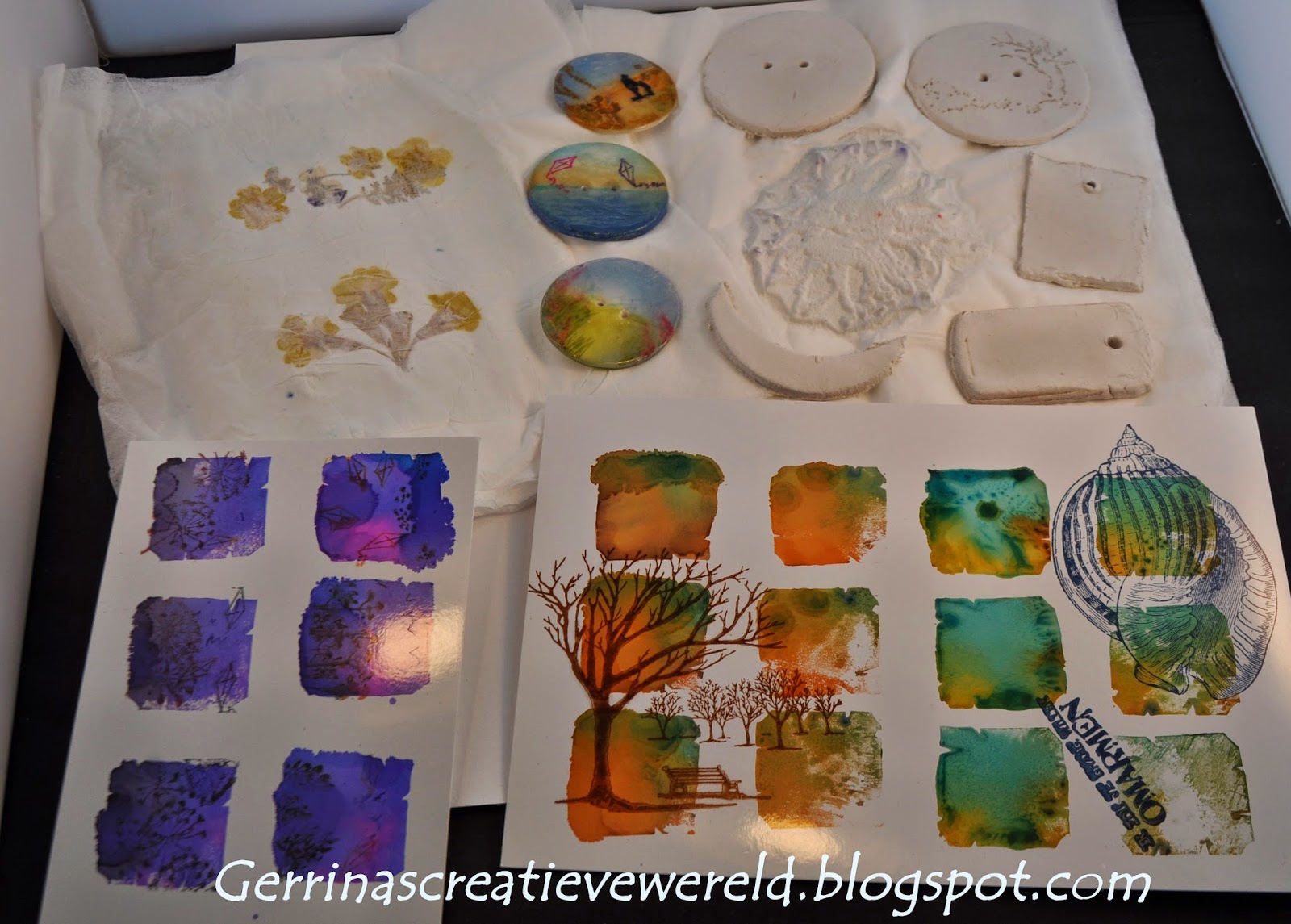 Gisteren een heerlijke verrassingsworkshop gevolgd van Eefke Moes bij The Stamping Cottage. Heerlijk drie verschillende technieken gedaan (Papercasting, knopen van klei gemaakt en landschapjes erop gestempeld plus 'n alcoholinkt-techniek) en met een gezellige groep veel gemaakt! Dit is wat ik gemaakt heb: